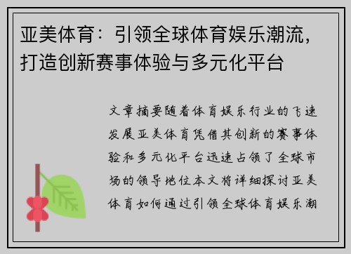 开发赛事相关的移动应用程序,提升用户体验。